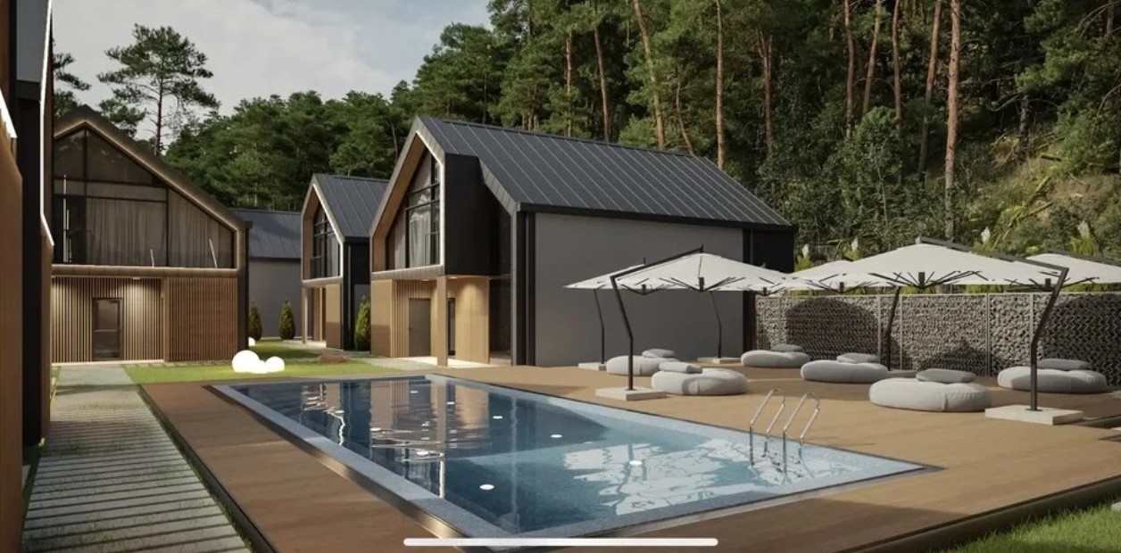 По плануванні передбачено 2 спальні та два сан вузла, кухня студія. Басейн 13*5 з підігрівом. Супер локація над річкою Прут, та одночасно в лісі і поруч всіх туристичних маршрутів, що принесе вам у майбутньому безліч туристів.