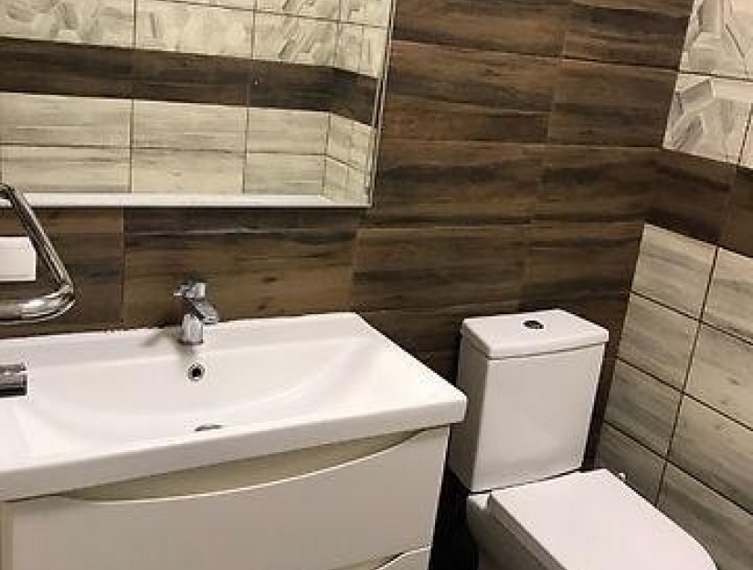 Якісна сантехніка у ванній кімнаті та тепла підлога.
