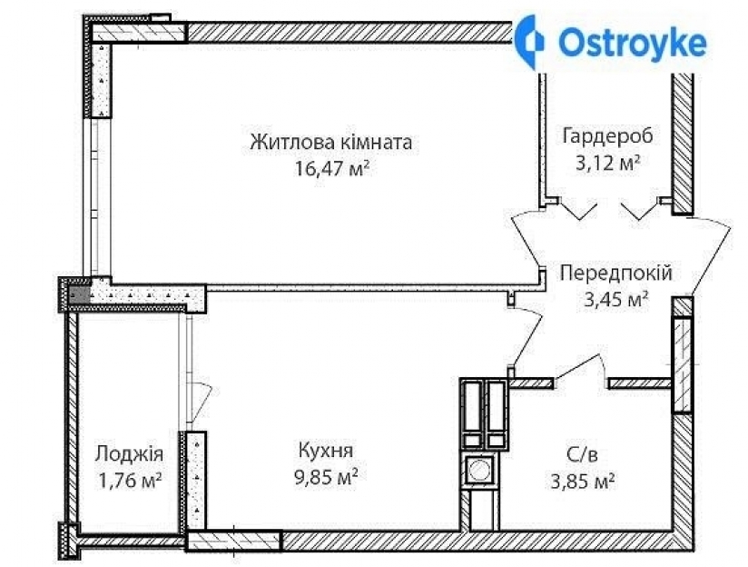 помещения - санузел: совмещенный • лоджия: 1 • застекленные: 1
