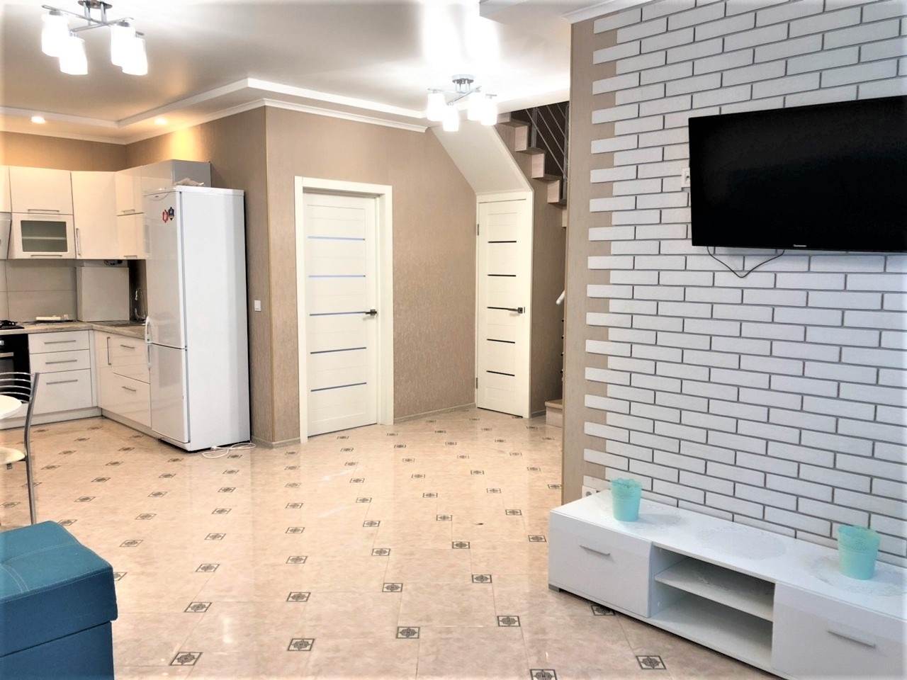 Кухонный гарнитур новый с новой хорошей техникой. В комнатах есть необходимая мебель. Всё остаётся.