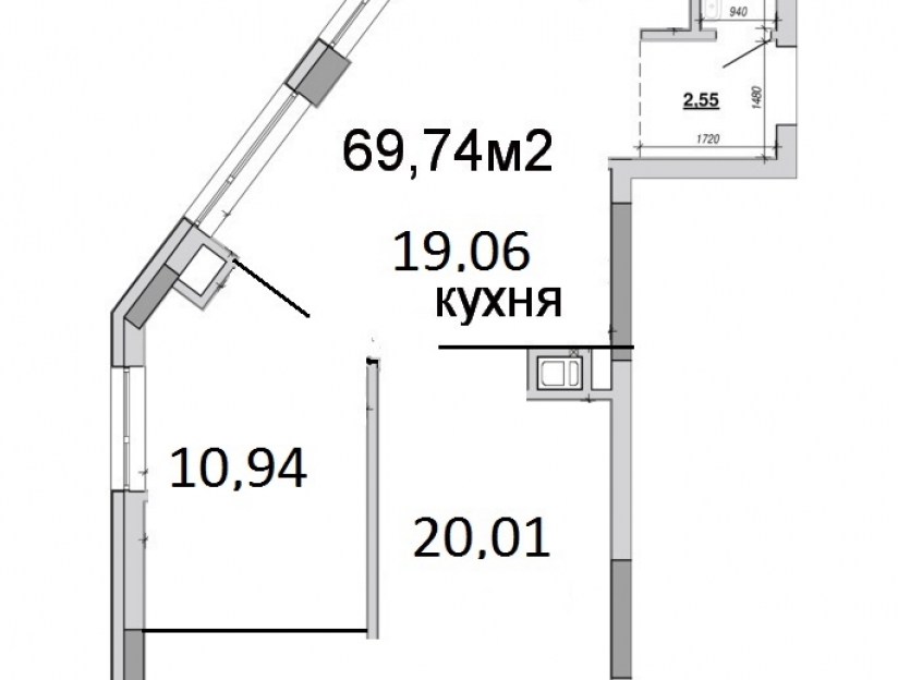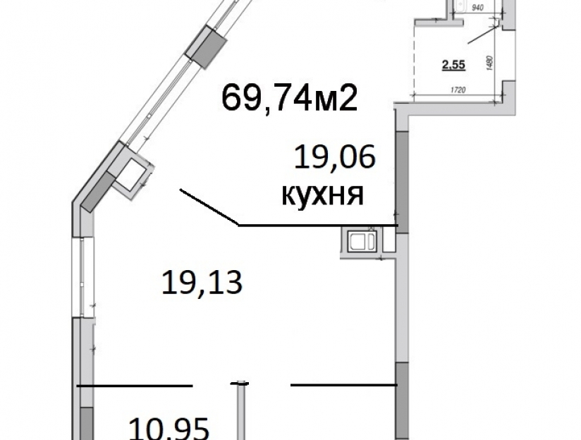 * Кухня-вітальня 19м2 з панорамними вікнами
