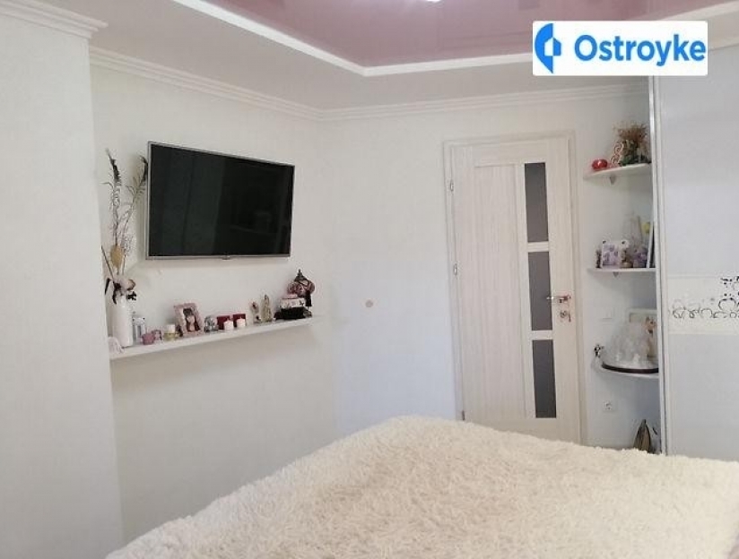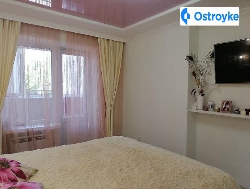 Зі спальні вихід на лоджію-4, 2 кв.м., яка утеплена всередині і ззовні, стіни-натуральна вагонка-липа, підлога-керамічна плитка, дві шафи-купе, металопластикові вікна, освітлення, розетки.
